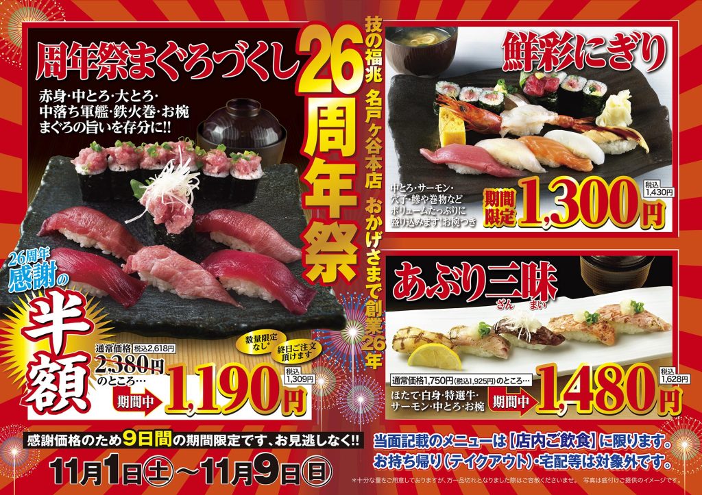 【お知らせ】《予告》11/1~11/9 26周年祭を行います